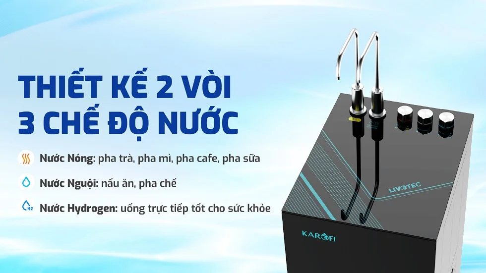 Máy lọc nước Livotec TG68 tích hợp hai vòi riêng biệt với ba chế độ nước: