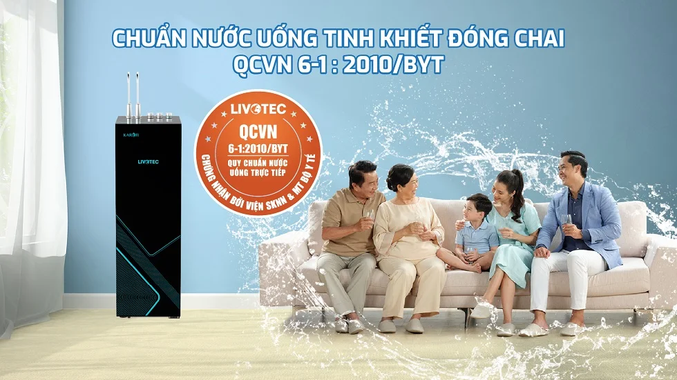 Máy lọc nước LIVOTEC đạt chuẩn nước uống trực tiếp QCVN 6-1:2010/BYT – tương đương chất lượng nước đóng chai; do Viện Sức khỏe nghề nghiệp & Môi trường – Bộ Y + Tế công nhận theo quy trình của WHO.