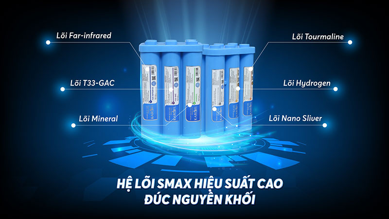 b. Cụm lõi lọc Smax nhân đôi hiệu suất lọc được sử dụng trong máy lọc nước Karofi KAQ-O07